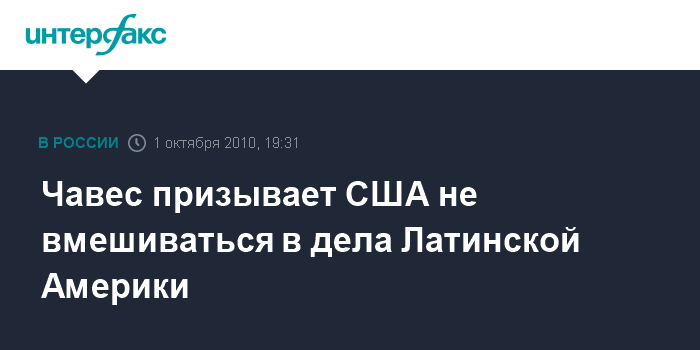 Буэнос-Айрес. 1 октября. INTERFAX.RU - Президент Венесуэлы Уго Чавес обратился в пятницу к США с призывом не вмешиваться во внутренние дела стран Латинской Америки, сообщает агентство ЭФЭ.