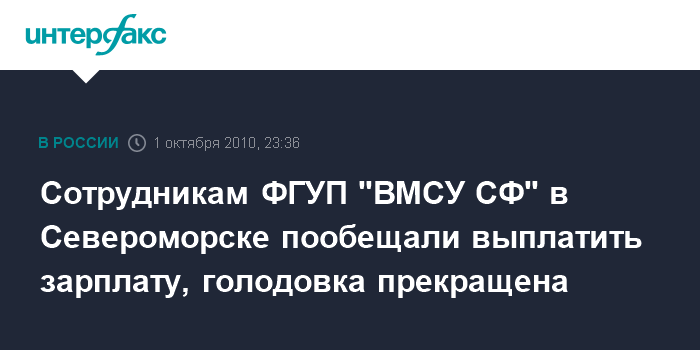 Сотрудникам ФГУП "ВМСУ СФ" в Североморске пообещали выплатить зарплату, голодовка прекращена