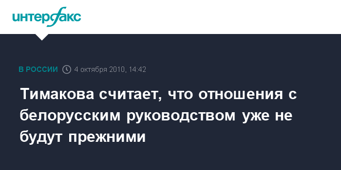 Тимакова считает, что отношения с белорусским руководством уже не будут прежними