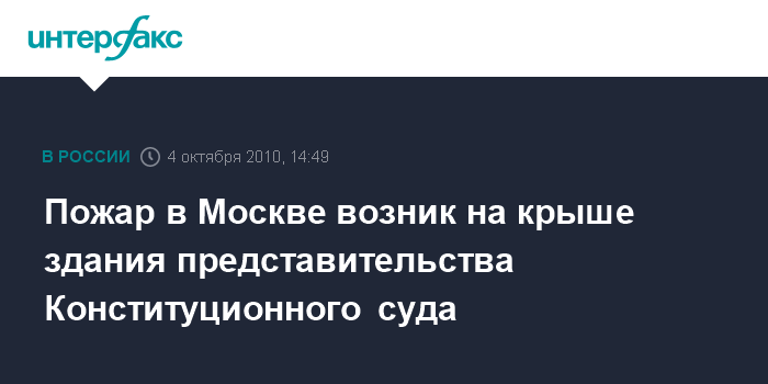 Пожар в Москве возник на крыше здания представительства Конституционного суда