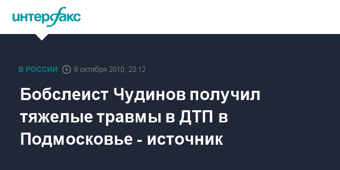 Москва. 6 октября. ИНТЕРФАКС - В Подмосковье в ДТП пострадал член сборной России по бобслею Сергей Чудинов, сообщил "Интерфаксу" источник в министерстве здравоохранения региона.