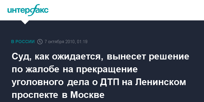 Суд, как ожидается, вынесет решение по жалобе на прекращение уголовного дела о ДТП на Ленинском проспекте в Москве