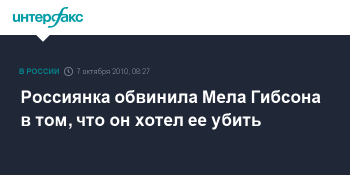 Вашингтон. 7 октября. INTERFAX.RU - Гражданка России Оксана Григорьева, бывшая пассия знаменитого голливудского актера и режиссера Мела Гибсона, заявила, что он хотел ее убить, сообщает американский журнал People.