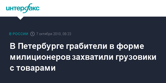 В Петербурге грабители в форме милиционеров захватили грузовики с товарами