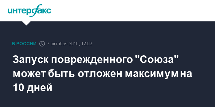 Запуск поврежденного "Союза" может быть отложен максимум на 10 дней