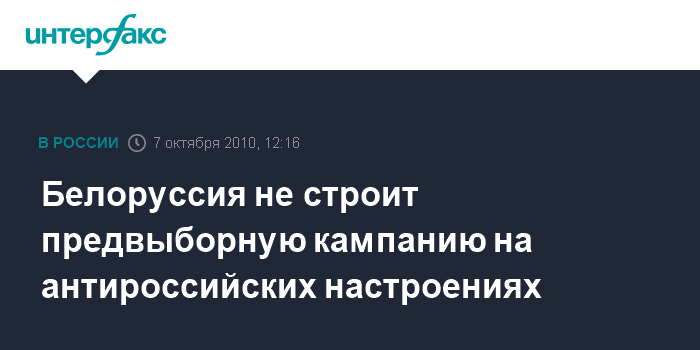 Белоруссия не строит предвыборную кампанию на антироссийских настроениях