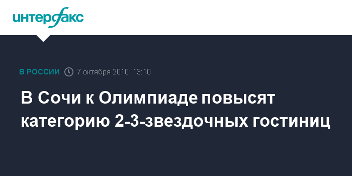 В Сочи к Олимпиаде повысят категорию 2-3-звездочных гостиниц