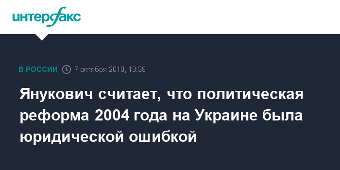 Янукович считает, что политическая реформа 2004 года на Украине была юридической ошибкой