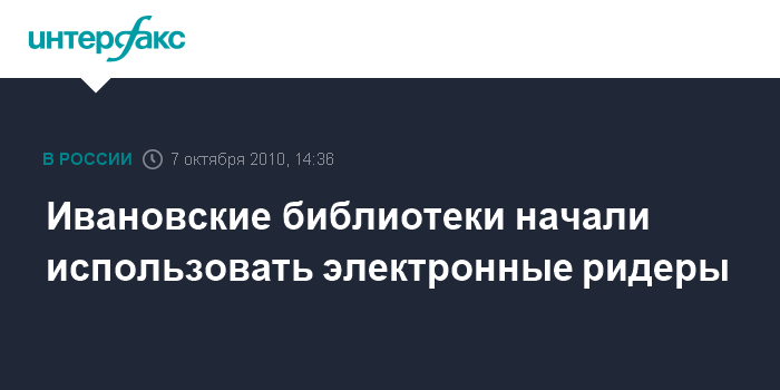 Пресс-служба регионального департамента культуры и культурного наследия сообщает, что ивановские библиотеки вошли в пилотный проект Российской государственной библиотеки по разработке методики использования ридеров в условиях публичной библиотеки.