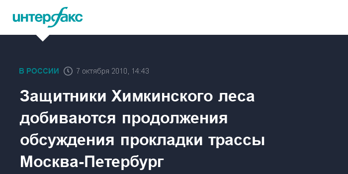 Москва. 7 октября. INTERFAX.RU - Защитники Химкинского леса пожаловались в Общественную палату РФ на то, что обсуждения проекта трассы Москва - Петербург проходят за закрытыми дверями, и общественность по-прежнему исключена из дискуссии.