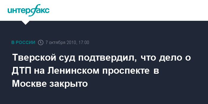 Тверской суд подтвердил, что дело о ДТП на Ленинском проспекте в Москве закрыто