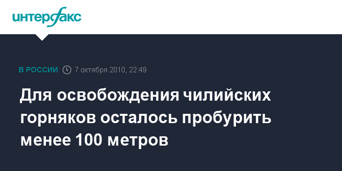 Для освобождения чилийских горняков осталось пробурить менее 100 метров