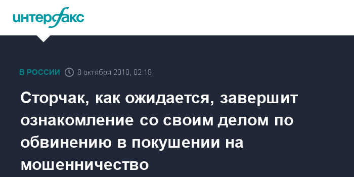 Москва. 8 октября. ИНТЕРФАКС - Замминистра финансов Сергей Сторчак, обвиняемый в покушении на мошенничество, должен в пятницу закончить ознакомление с материалами своего дела.
