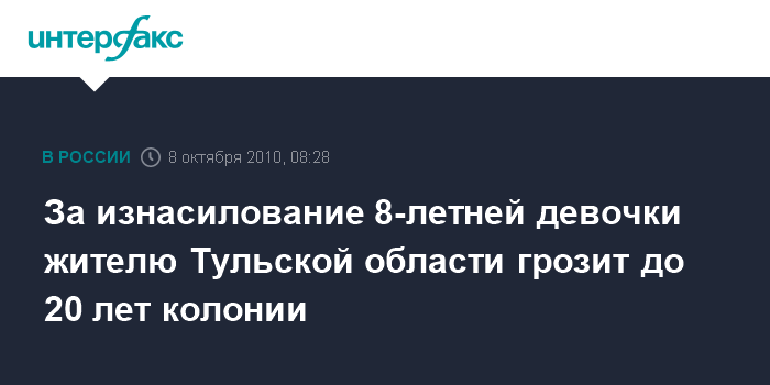 За изнасилование 8-летней девочки жителю Тульской области грозит до 20 лет колонии