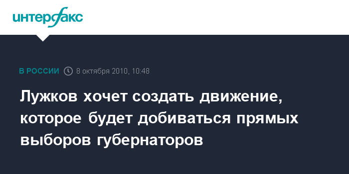 Лужков хочет создать движение, которое будет добиваться прямых выборов губернаторов
