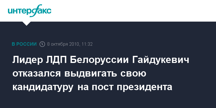 Лидер ЛДП Белоруссии Гайдукевич отказался выдвигать свою кандидатуру на пост президента