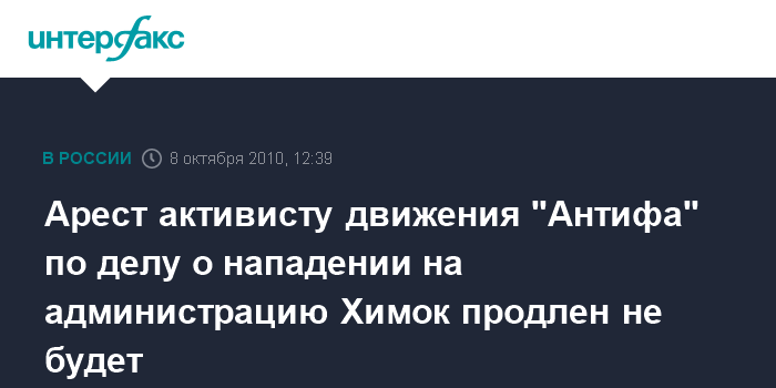 Арест активисту движения "Антифа" по делу о нападении на администрацию Химок продлен не будет