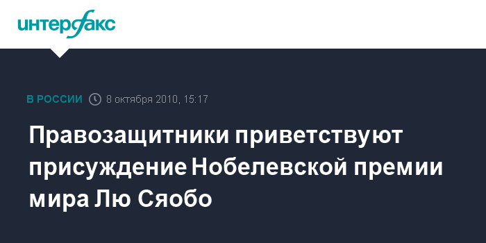 Вашингтон. 8 октября. INTERFAX.RU - Международная организация "Репортеры без границ" в пятницу назвала историческим решение присудить Нобелевскую премию мира китайскому правозащитнику Лю Сяобо.