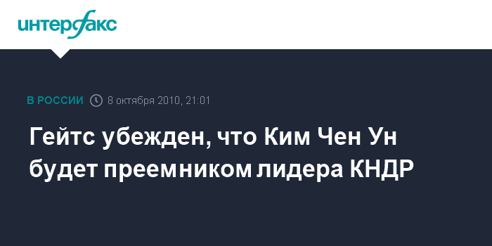 "Откровенно говоря, мы все придерживаемся мнения, что Ким Чен Ун может в любой момент стать лидером КНДР", - сказал Р.Гейтс на совместной конференции с министром обороны Южной Кореи Ким Дэ Юном.