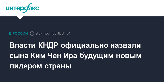 Власти КНДР официально назвали сына Ким Чен Ира будущим новым лидером страны