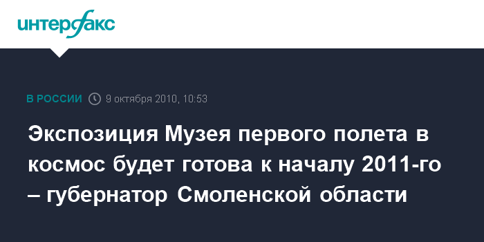 Экспозиция Музея первого полета в космос будет готова к началу 2011-го – губернатор Смоленской области