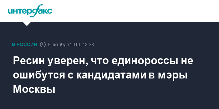 Ресин уверен, что единороссы не ошибутся с кандидатами в мэры Москвы