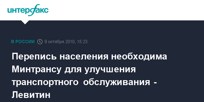 Перепись населения необходима Минтрансу для улучшения транспортного обслуживания - Левитин