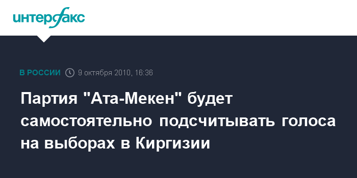 Бишкек. 9 октября. INTERFAX.RU - Социалистическая партия "Ата-Мекен" намерена вести свой собственный параллельный подсчет голосов на выборах в парламент Киргизии 10 октября, сообщил "Интерфаксу" в субботу заместитель председателя этой партии Равшан Джеенбеков. "Завтра в здании Национальной филармонии в Бишкеке будет расположен наш штаб, где мы будем вести свой собственный учет голосования", - сказал Р.Джеенбеков. По его словам, от "Ата-Мекен" на каждом из участков будут представлены наблюдатели. После подведения итогов они посредством факсимильной связи или по телефону будут передавать данные в этот штаб.