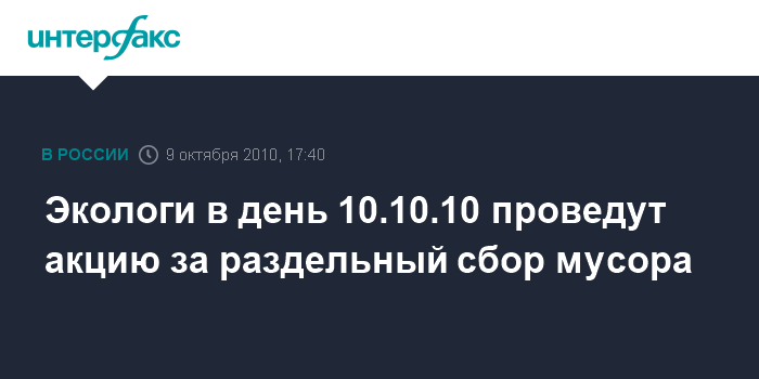 Экологи в день 10.10.10 проведут акцию за раздельный сбор мусора