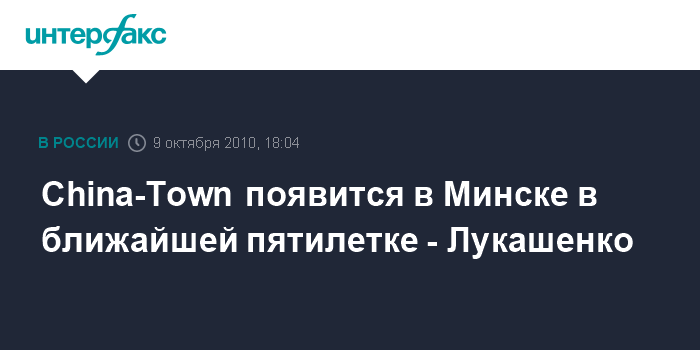 Минск. 9 октября. INTERFAX.RU - В течение пяти лет в Минске появится китайский квартал, заявил президент Белоруссии Александр Лукашенко в интервью китайским СМИ в субботу. "В ближайшую пятилетку островок Китая, квартал, в Минске появится со всеми образцами культуры, кухни, традиций ваших. И очень бы хотелось, чтобы там работали не только китайские, но и наши люди. Мы также заинтересованы, чтобы китайцы, строя у нас жилье, привносили свою культуру сюда, чтобы было видно, что это китайцы сделали", - сказал А.Лукашенко.