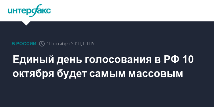 Москва. 10 октября. ИНТЕРФАКС - Около 8 тыс. выборов различного уровня пройдут в воскресенье в России в рамках Единого дня голосования, в том числе выборы в парламенты шести регионов.