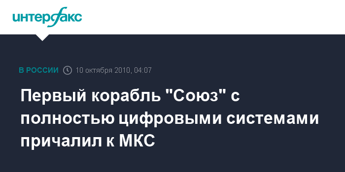 Первый корабль "Союз" с полностью цифровыми системами причалил к МКС