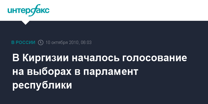 Бишкек. 10 октября. ИНТЕРФАКС - В Киргизии в 08:00 (06:00 мск) открылись избирательные участки, и началось голосование на выборах депутатов парламента Киргизии. Голосование подлиться до 20:00 (18:00 мск.).