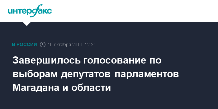 Кроме того, завершилось голосование по выборам депутатов думы Магаданаю Представитель городской избирательной комиссии сообщил агентству, к 18:00 часам местного времени правом принять участие в выборах воспользовались 24 тыс. 801 избиратель из 77 тыс. 321 в общем списке, что составляет 32,08%. В 2005 году к этому же времени к урнам пришло немного меньше горожан - 28,54%ю В горизбиркоме также отметили, что заявлений о нарушениях во время голосования не поступали.