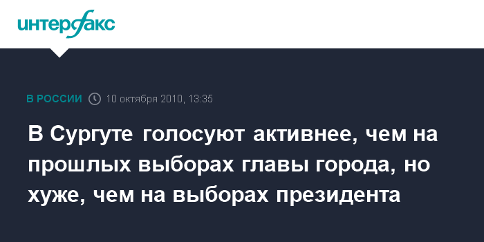 Ханты-Мансийск. 10 октября. INTERFAX.RU - Участие в выборах главы города Сургута (ХМАО), по данным на 15:00 по местному времени, приняли 19,01% избирателей. Как сообщили агентству "Интерфакс-Урал" в территориальной избирательной комиссии Сургута, выборы нового главы муниципального образования проходят без сбоев. "Хочу заметить, что на этих выборах жители Сургута голосуют активнее, чем на предыдущих выбора главы города, но, вместе с тем, не так активно, как это было на последних выборах президента России", - уточнил представитель территориального избиркома.