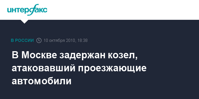 В Москве задержан козел, атаковавший проезжающие автомобили