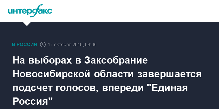 Новосибирск. 11 октября. ИНТЕРФАКС-СИБИРЬ - "Единая Россия" по итогам обработки 95,21% бюллетеней набирает 44,8% голосов избирателей на выборах в Законодательное собрание Новосибирской области.