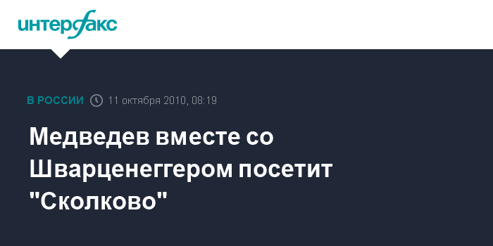 Накануне вечером Медведев поприветствовал прибывшего в столицу губернатора Калифорнии в "Твиттере". "Добро пожаловать в Москву", - написал президент РФ Шварценеггеру. Тот, в свою очередь, поделился впечатлениями в "Твиттере" от своей поездки в московском метро.