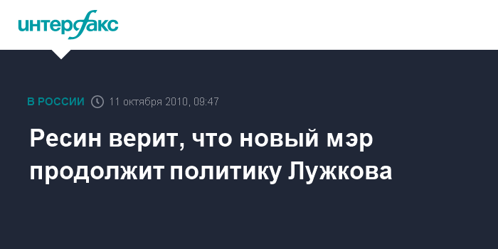 Ресин верит, что новый мэр продолжит политику Лужкова