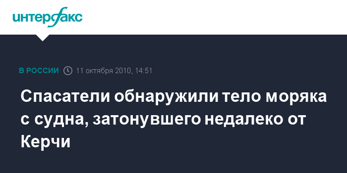 Киев. 11 октября. INTERFAX.RU - Спасатели обнаружили тело моряка из экипажа судна "Василий", затонувшего близ Керчи в территориальных водах Украины, сообщили агентству "Интерфакс" в пресс-службе Главного управления МЧС Украины в Крыму.