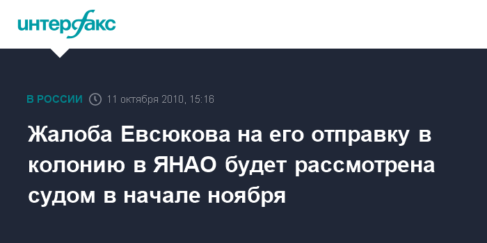 Жалоба Евсюкова на его отправку в колонию в ЯНАО будет рассмотрена судом в начале ноября