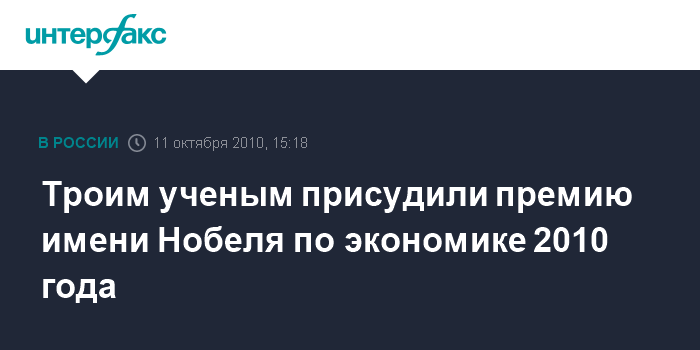 Троим ученым присудили премию имени Нобеля по экономике 2010 года