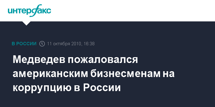Медведев пожаловался американским бизнесменам на коррупцию в России