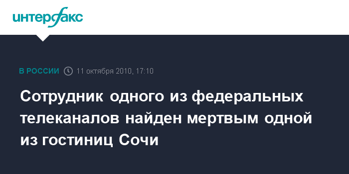 Сотрудник одного из федеральных телеканалов найден мертвым одной из гостиниц Сочи