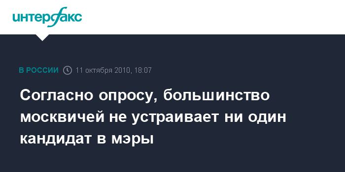 Согласно опросу, большинство москвичей не устраивает ни один кандидат в мэры