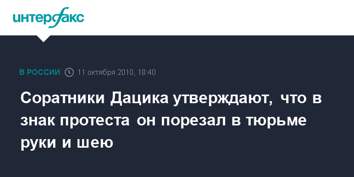 Соратники Дацика утверждают, что в знак протеста он порезал в тюрьме руки и шею