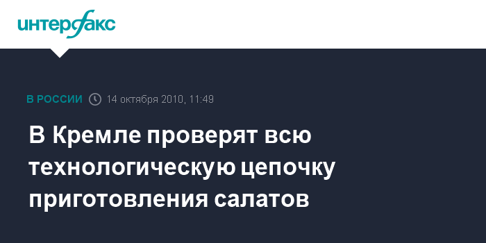 Москва. 14 октября. INTERFAX.RU - Управление делами президента РФ проверит достоверность информации о некачественном салате, который якобы был подан на приеме в Кремле по случаю визита в Россию президента ФРГ Кристиана Вульфа.