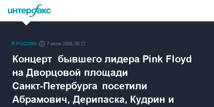 Концерт бывшего лидера Pink Floyd на Дворцовой площади Санкт-Петербурга посетили Абрамович, Дерипаска, Кудрин и Греф