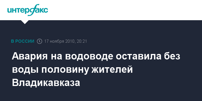 Владикавказ. 17 ноября. INTERFAX.RU - Во Владикавказе (Северная Осетия) устраняют аварию на водоводе, нарушившую водоснабжение жилых районов центральной части правого берега реки Терек.