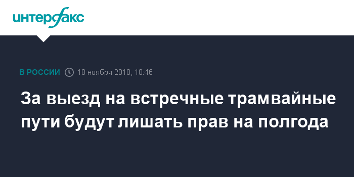 По его словам, одна из норм, введенных федеральным законом РФ от 23 июля 2010 года N 175-ФЗ усиливает ответственность за выезд на трамвайные пути встречного направления, предусмотренный (ст. 12.15 КоАП РФ).